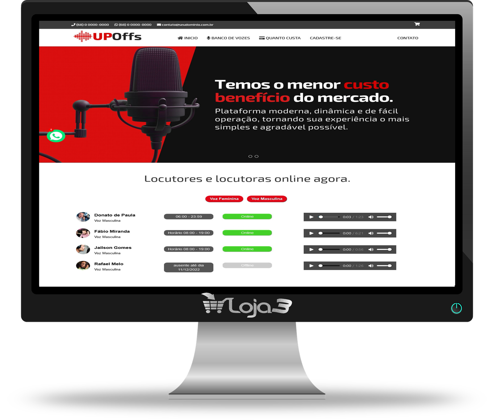 Site para Locutores 100% responsivo em PHP MySQL com Painel Administrador, fácil edição pelo painel, feito em PHP 7.4 MySQL, utilizando os Framework Bootstrap v3.3.7 e Font Awesome 5.7.0 para agiliza maior performance de navegação.